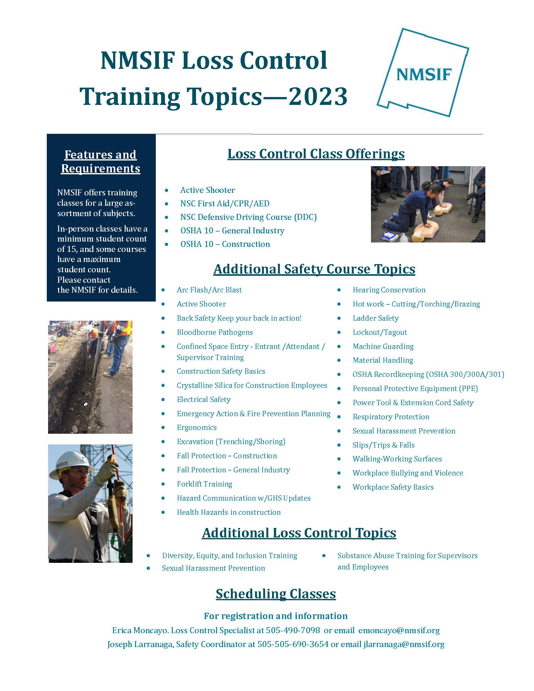 Please fill out the Loss Control Trainings Interest Form to begin the registration and scheduling process.